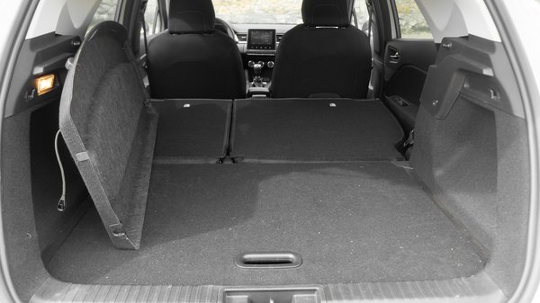 A bunkerség a nyers centikben nem mutatkozik meg, elöl ülve az volt az érzésem, hogy sokkal nagyobb autóra igazából nincs is szükség. Hátul a 175 centimmel már jó ideje elférek kényelmesen az ilyen jóllakott óvodásra hízott kisautókban is, úgyhogy nem jelent semmit, hogy a Capturben sem súrolta a térdemet az első üléstámla. Az ülőlapok mérete is rendben van, viszont ablakfelületből ide még kevesebb jut, valahogy nem egy szívderítő élmény itt utazni. Mivel az új platformnak köszönhetően 10 centit nyúlt a Captur az előző generációhoz képest, így elég nagy csomagtartója is maradt. A katalógusba 536 litert írtak, de azért van bőven trükközés a kettéosztott rekesszel, előretolt hátsó üléspaddal és a pótkerék hiányával. Az oszthatóság viszont kell ahhoz, hogy az ülések ledöntése után sík legyen a raktér. A döntögető mechanizmusban nincsen semmi extra, de legalább már normálisan burkolták az ülések hátulját is, szóval kulturáltság van, kérem.
