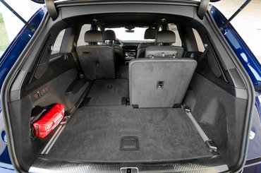 A Q7 marha nagy, ha még nem említettem volna. A Range Rover is marha nagynak tűnik, de egy BMW X5 ugyanakkor nagyobb, még ha külön kisebbnek is gondolnám. Na a Q7-est sikerült olyan őszintére dizájnolni, hogy pont olyan böszme nagy, amekkorának kinéz. Akkora, hogy rögtön csak hétüléses kivitel van belőle, és még így is marad 865 liter csomagtartó. Bár mankókerék nem marad. Leghátra kicsit körülményes bemászni, de ha a középső üléseket előbbre húzzuk, el lehet férni. A középső üléseken ilyenkor fényűző helyett csak kényelmes a tartózkodás, viszont a harmadik sokban is elviselhető, bár én nagyon nem szeretek olyan ülésen utazni, ahonnan nem vezet kifelé ajtó. Nem véletlen, hogy ezeket a harmadik sorokat olyanokra tervezik, akik nem látták még a Végső állomás sorozatot.