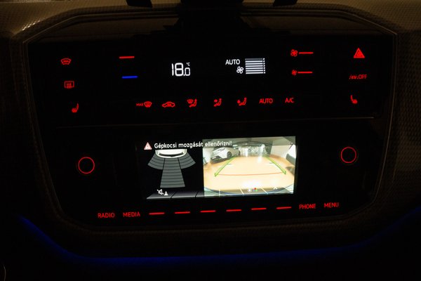 Méretei miatt a parkolás is könnyű, ezért is volt vicces, hogy a konkrét modellben az amúgy hagyományos (bár kicsit fura színű karakterekkel működő) fejegységnek tűnő kijelzőn megjelent a parkolókamera képe, amiről mindjárt az egérmozi kifejezés jut az ember eszébe.