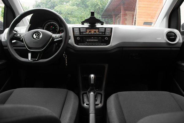 Amikor először találkoztam az Uppal, mindig úgy éreztem, hogy újrafeldolgozott tejfölöspoharakból készült. Ezt jócskán okozhatta a fehér belső, így feketében azért nem annyira vészes. A műszerfalon végigfutó mintás anyag pedig kimondottan jót tett az érzésnek.