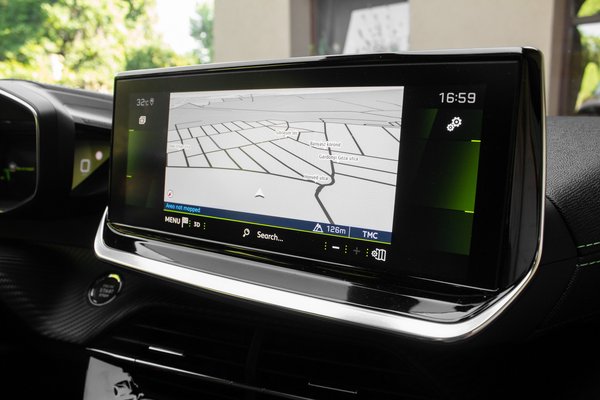 A tesztautó maga egy GT. Kicsit zavaros mostanság, ahogy a márkánál ezzel a két betűvel bánnak, mert a konfigurátorukban a 136 lovas villanyos is GT-ként fut, néhol meg e-GT-ként. És akkor ott vannak még ugye a GT Line-ok, amik külsőre szintén ilyenek, mint ez a 155 lovas benzines GT, csak kicsit szerényebb a felszereltségük, és ott a 130 lóerő a csúcs. A legegyszerűbben talán úgy lehet besorolni őket rendszertanilag, hogy minden, aminek a nevében valamennyire ott a GT a 2008-nál, annál az oszlopokkal együtt a tető is full fekete. Külsőre nagyjából ennyi, meg még esetleg szemet bökhet, hogy a csúcsbenzines GT-vel van dolgunk, ha ezeken a 18-as felniken áll, ugyanis az is széria a csomagban.