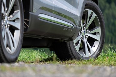 Terepre meg ugye, ott az összkerékhajtás – ez nem az egyszerűbb fajta hibrid-4x4, ahol az első kerekeket a benzinmotor, a hátsókat meg besegítésképpen alkalmatlankodó villanymotor hajtja, hanem itt van egy rendes, összkerekes, központi tengelykapcsolóval zárható hajtás, amely alapból a hátsó kerekeket tekeri, s csak a központi kuplung zárására kapcsolja az elsőket. A rendszer működtetéséhez nincsenek diffizáró karok, felezőkallantyúk és egyebek a vezető keze ügyében, csak egy üzemmódválasztó tekerőgomb, amellyel a havas, köves, sáros, sportosan autópályás, vontatós, illetve takarékos módozatok közül választhatunk, a többit pedig megoldja a magasabb intelligencia. A 2,5 tonnás behemót pedig ráadásul még a saját tömegével megegyező utánfutót is vontathat, ami szépen kikerekíti a várható szerepkörét.