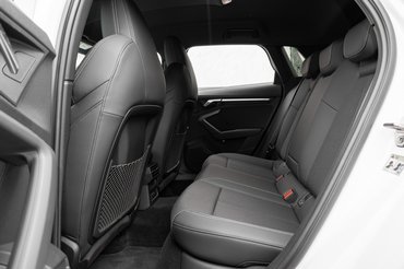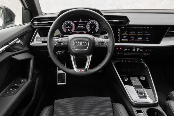 Akármennyire is más világ az A3 belseje, lényegében hajszálra ugyanazt nyújtja, mint az elődje, és ha szétnézünk, a Mercedes A-osztály inkább ultramodern mellette. A vetélytársakhoz hasonlóan már szintén keresztmotoros, új 1-es BMW meg mintha egy picit vékonyabb anyagból lenne. Az A3 ebben a trióban a komoly autó, nem is merészkedik odáig hipszterségben, mint a Merci a deszka méretű LCD-vel. Viszont praktikumból nagyságrendileg ugyanazt tudja, mint egy Golf VIII, csak épp komoly Audi-szinten. A csomagtartó kompaktautós méret (380 l), és kérhető a padlója alá szükség-pótkerék, a hátsó tér meg bőven elég tágas, hogy felnőttek is utazzanak ott. Hátsó ajtók is vannak - úgy tűnik, az A3 ötajtósként és limuzinként él tovább, aztán majd meglátjuk, lesznek-e egzotikus verziók, mint a kabrió.