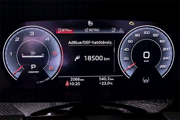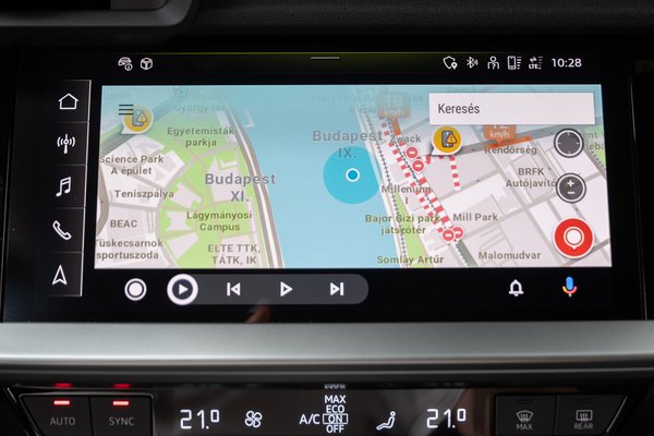 A multimédia és egyéb fedélzeti cuccok jól tükrözik, hogy a német prémium márkák igyekeznek tartani a lépést a mobilok fejlődésével, így nagy hibát sem az Audi elektronikus műszeregységén, sem az MMI-nek hívott, amúgy már csak az érintőképernyőn kezelhető multimédiájával nem tapasztaltam. Logikus, jól is működik, bár a magyar fordítás kissé nyakatekert, és tele van indokolatlan rövidítésekkel. Oké, megértem én, hogy tolatáskor A jármű mozg. pályáját ellenőrizni, de valójában ilyet senki nem mond magyarul arra, hogy körülnéz.