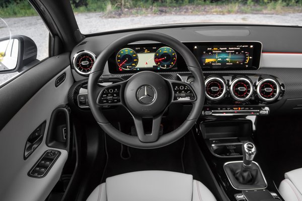 Jó rég volt, hogy utoljára manuális Mercit vezettem, hogy úgy mondjam, nem erről híresek, de ez a váltó majdnem tökéletes. Az egyetlen hibája, hogy hosszú úton jár a kar, bár polgári autónak talán még ezt sem lehet felróni, amúgy remek kapcsolási érzetet ad és pontos. A kormánnyal ugyanaz a helyzet, mint a többi A osztályban: meglepően direkt, szinte már sportosan keveset kell tekerni, közben az autó nagyon fordulékony. Az átlagnál egyértelműen könnyebb a kis Mercivel manőverezni, ezen a hosszabb test és a manuális váltó sem ront, pláne hogy a hátramenet jól lehatárolt. Szintén kellemes a Renault-Nissan-Mercedes közös fejlesztésű 1,33 literes turbómotor, melyet a németek maguknak gyártanak Türingiában. A limuzin 1,4 tonna velem a volánnál, mégis olyan lelkesen szalad vele a négyhengeres, hogy hirtelen nem is értem, minek ennél több lóerő.