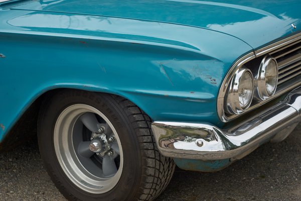 Ezt az időszakot nyugodtan nevezhetjük Detroit virágkorának, és a nagy Chevy, az idővel legendává nemesedő Small Block V8-cal (SBC) tökéletes időkapszula. Grégory autója ugyanis gyakorlatilag eredeti, sosem újították fel és szinte gyári. Kaliforniában készült, és ott élte napjait egészen 2012-ig, amikor árverés útján Franciaországba került, majd egy német tulajdonoshoz, tőle vette a barátom 2016-ban. Sok időt tölthetett garázsban az árverés előtt is, mert az egyetlen lakatolni való a csöpögő fűtőradiátor miatt elrozsdált taposó volt, amit csúnyán javítottak, ezért Grégory újra megcsinálta és új szőnyeget vett rá. A motorra modern gyújtás illesztett, hogy mindig szépen induljon és jól húzzon, illetve még a német tulaj vette rá ezeket a komikusan nagy, elöl 255, hátul 275 széles gumikat American Racing Torque Thrust felniken. És ennyi, minden más úgy van, ahogy az elmúlt 60 évben mindig, még a fényezés is.