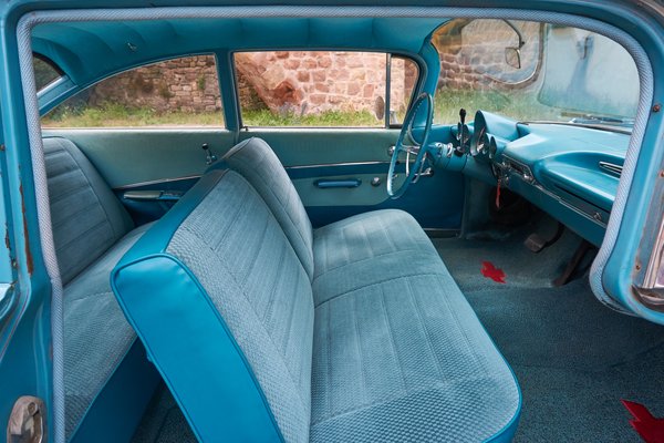 Ez az autó egészen elképesztő. Az űrkorszak nyitányának hatására stilizált rakéta az oldalán, és lángcsóvát mintáznak a hátsó lámpák a széles szárnyak alatt, de nem csak az üt nagyot, ahogy kinéz, hanem amekkora – szélessége és hossza a szűk elzászi utcákon értelmezhetetlen. Pedig újként árulták Franciaországban is, talán a világháborús kapcsolatoknak köszönhetően volt keletje az USA tepsiknek arrafelé az olajválság előtt, úgyhogy vicces módon könnyebb volt regisztrálni, mint az MR2-t. Három és négyfokozatú manuális, illetve kettő- vagy háromfokozatú automataváltó közül lehetett választani, ez a Powerglide, azaz a kétfokozatú automata. A kormányoszlopon van az előválasztó kar, ott lenne a manuális is persze.