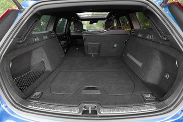 Ha nem is elképesztően sokoldalú, de jól használható csomagtérrel van itt dolgunk, mert csomagrendező sínrendszer, ide-oda tehető korlát-együttes nincs benne, de kapunk erős rögzítőfüleket, cekkertartó kampókat az oldalfalakban, 12 voltos csatlakozóaljzatot, illetve a legjobb Volvo-raktérszolgáltatást, a padlóból felhajtható, masszív csomagtartó-elválasztó falat is. Egy ekkora barlangnál ugyanis nagyon nem mindegy, hogy egy csupán közepes méretű bevásárlás után, az első nagyobb fékezést követően a csomagtartó mélyébe hasalva kell-e összeszednünk az összes cókmókot, vagy minden ott marad-e kéznél, a kocsi végében.