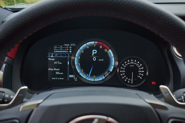 Kiszámítható, semleges a Lexus mozgása, talán kikapcsolt felvigyázással is az lenne, de annyira forgatni kell a motort, hogy egy hétvégi rövid próba kevés kitanulni a határait. Pedig ott a sperr a hátsó kerekek között, ott a kezelhetőséget segítő hosszú tengelytáv, el tudom képzelni, hogy lehet vele kontrolláltan sederinteni. Ha bemelegedtek a Michelin sportgumik, annyira fognak, hogy nyikkanás nélkül nagyobbat fékez, mint a földi gravitáció (1,1 G a kijelző szerint). Úgy kanyarodik sima országúton, mintha sínen lenne, mi lehet versenypályán, vagy driftbe vágva?