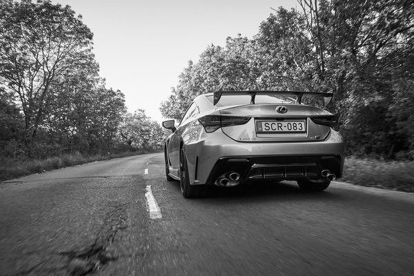 Elsőre meglepő, hogy klasszikus automataváltót kell D-be húzni az induláshoz, de az AMG Mercedesekben is így van, szóval nem az ujjából szopta a Lexus az ötletet. Szűk parkolókban a méregdrága karbon küszöb és splitter miatt izzadva, meg úgy általában a mindennapi közlekedéshez ez jó, a papíron nagyon erős, és ránézésre nagyon vad autó kezes bárány vele. A motor négyezres fordulatszám alatt szinte erőtlen, egyáltalán nem harap, még csendes is, mintha kissé lusta, luxusra hangolt V8 lenne. 130 km/h-nál 2000-et forog nyolcadik fokozatban, miközben a csúcsteljesítmény 7100-nál érkezik, így könnyű ártatlanságot színlelni, még autópályás gyorsításnál is visszadob egy-két fokozatot a váltó. Aztán amikor már pont kezdené elaltatni a gyanakvásom, bevillan, hogy a 130 km/h az kevesebb, mint a fele a 270-re korlátozott végsebességnek. Öhm, izé.