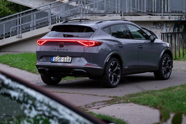 Ha az új Seatokra elfogadjuk, hogy menők, akkor erre a Cupra Formentorra új dimenziót kell nyitnunk, mert annyival dögösebben néz ki bármilyen Seatnál (teszem hozzá, az Arteont leszámítva bármilyen Volkswagennél és minden Skodánál), hogy kilóg az eddigi értelmezési keretrendszerből. Minden szögből jól néz ki, minden nagyobb és kisebb felületén van valami érdekes hajlítás, él, lámpa, betét, az egész mégis rettentősen egyben marad, harmonikus, kicsit úgy, ahogy a Sagrada Familia. Persze autóban, meg száz évvel később, meg... ehh, alapvetően mindegy. Szóval tényleg tetszik mindenkinek, látom a guvadó szemekből. Pokolian mutatós – eddig kétféle színben láttam, mindkettőt csak bámultam én is, halk nyál csöppent a POHU-aszfaltra.