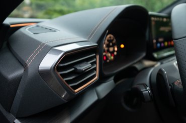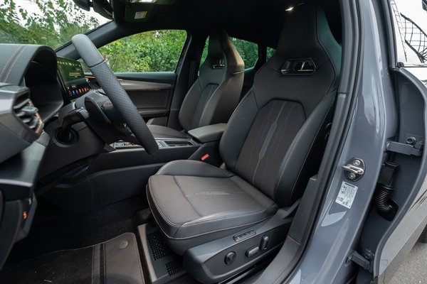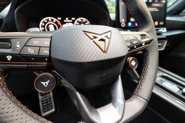 A Formentorral való közlekedés folyamatos velejárója egyfajta állandó karcosság, bármelyik autóüzemmódot is tárcsázza fel az ember a már emlegetett Cupra-gombbal. Egy ideig próbálkoztam (van olyan beállítás is, ahol mindent – gázpedál-érzékenységet, váltási pontokat, csillapítást magának hangolhatja az ember), aztán alapbeállításban hagytam az egészet. A finom bukkanókat olyankor sem nagyon szűri ki a rugózás, a közepeseken is csak alibiből dolgozik kicsit, a nagy gödrökön pedig alaposan odaüt, még reccsen is minden körülöttünk egy nagyot. Létezik az a sima út, amelyiken elfogadhatónak érezni, de olyanból nagyon kevés van a mi hazánkban. Emellett a gördülési zaj is a hallhatótól a tetemesig terjedő skálán mozog, útfelülettől függően. Szóval nem az érzékenyek, ábrándos lelkűek járműve lesz ez.