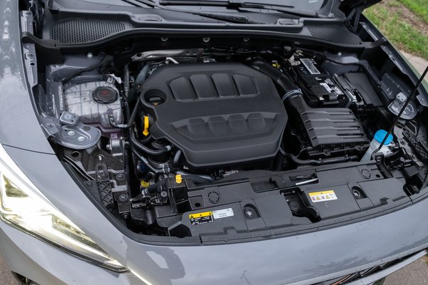A motor meg tényleg fantasztikus, mit művel. Ha nekem öt évvel ezelőtt valaki mutat egy ilyet, és azt mondja, kétliteres, hát hangosan kiröhögöm. Képtelenség. De nem, 2020-ra eljutottunk oda, hogy 155 LE/l fajlagos teljesítmény mellett is csak ekkora blokkra van szükség. Ez mindenhol megy, lent lelkesen és azonnal, közepes fordulaton már mámorítóan, fent, jól kihúzatva meg totál antiszociálisba vált át. Ha ilyenkor Cupra-módban van a menetválasztó, kapunk hörgő-kerregő, váltáskor visszadurrogó, érdekes, eleinte nagyon izgalmas, később nettó szintetikus dobhártyapiszkálásnak tűnő zajokat is – nagyrészt a hangszórókból. Párszor szórakoztató, de ha több időm lett volna a kocsival, biztosan keverek magamnak egy olyan egyéni beállítás-koktélt, amiben Cupra-üzemmódosként működik minden, csak a zajt hagyom ki. Lehet egyáltalán olyat? Hirtelen nem is emlékszem, csak a 13 l/100 km-nél stabilizálódó fogyasztás rémlik fel egész konkrétan. Bár tény, nagyon sokat mentem városban, a keveset pedig, amit azon kívül tettem meg, nem éppen szelíden abszolváltam.