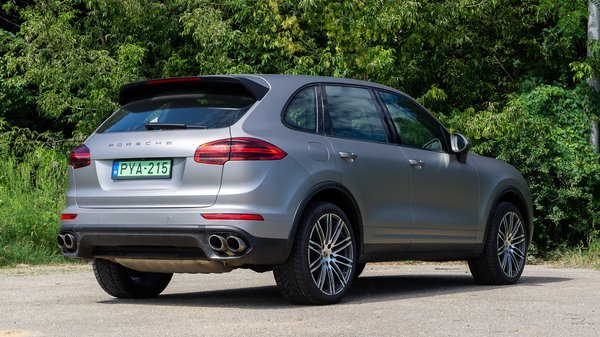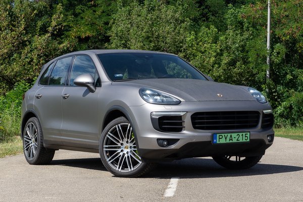 Nem biztos, hogy a Cayenne ekkora sikersztori lenne, ha a tervezői nem vették volna brutálisan komolyan a feladatot, és nem tettek volna meg mindent, hogy egy valóban terepképes SUV-t készítsenek, amellyel kanyarodni sem olyan borzalmas. Az első, egyébként VW Touareggel közeli rokonságban álló Cayenne kicsit amorf tulok lett a rengeteg elvárás miatt, de elég jó visszajelzéseket kapott, főleg SUV-mércével nézve. Ez a tesztautó már a 2010-2017 között gyártott második generáció (958-as széria), abból is egy 2014-es, faceliftes verzió, már plug-in hibrid hajtással, 210 ezer kilométernyi előélettel. Ez a kicsit maszatos motorháztetőn elég riasztóan fel is tűnik, de a selyemfényű matt szín csupán fólia, alatta nullkilométeres, ezüst gyári fény van – ennek valószínűleg nagyon fog örülni az új tulaj.