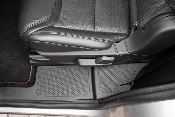A Fordnál ott van egy kis bibi, hogy a középső sor három ülése különálló, és oldalanként vagy 10-15 centit elvettek az autó szélességéből, hogy legyen két műanyag taposó, amire belép a hátra mászó utas. (Amúgy az ülést tök jól előre lehet tolni, vagyis ez kissé felesleges.) Ettől ezek az ülések nem túl szélesek, sőt, a leghátsók határozottan szélesebbek.