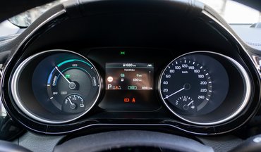 Egyébként egészen jól el lehet suhangatni ezzel a gyengécske villanymotorral is, de kell hozzá azért önmérséklet. Főleg, hogy közel padlógáznál még EV módban is beindul a benzinmotor, aminek elég csúnya, felbőgő hangja van. A bégetés ellenére nem CVT a váltó, hanem egy hatsebességes duplakuplungos, ami ráadásul a villanymotornál is kapcsolgat (három fokozata van). Ez elsőre furcsa lehet annak, aki sima villanyautókhoz szokott. Tetszett az is, hogy a villanyautóknál kötelező szellemhangot nem engedték be az utastérbe, a Ceed csak suhan csendesen, ahogy azt egy villanyautótól elvárjuk.