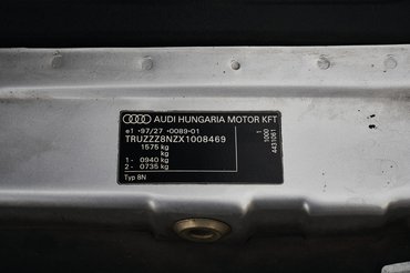 Persze Ausztria az alapos téli útsózás hazája, így a karosszérián van javítani való: mindkét küszöb lakatosért sír, és az utólag felszerelt szárny tövében is akad oxidációs púp a festéken. Apróságok, amiket nem szabad annyiban hagyni, mert elharapódzik a ragály. A küszöböt korábban nyilvánvalóan gányolták, ez tulajdonképpen az egyetlen lényeges makula az Audin. Bezzeg az utastér letagadhatna tizenöt évet és akármennyi kilométert, annyira szép állapotú a bőr meg a legtöbb műanyag felület. Egyetlen gond a korabeli VW-csoportos autók réme, az ajtófogantyúk hámló bevonata. Tipikusan az a kocsi, amit ha egy rosszlelkű nepper vesz meg, akkor a kilométer számlálót simán visszatekeri százötvenezerre, és bárki el is hinné neki.