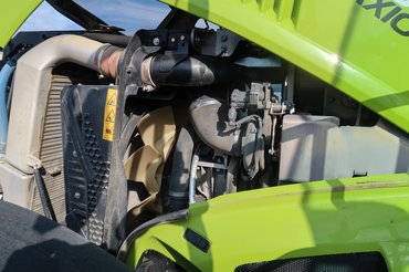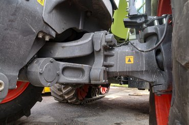 A Terra Trac gumihevederes járószerkezetről annyit kell tudni, hogy a német márka húsz éve alkalmazza kombájnjain, nagyon jó eredményekkel, de traktorhoz megtoldotta rugózással, hogy finomabban szaladjon országúti vonuláskor, illetve szép simán menjen a szántóföldön. Ez azért fontos, mert egyre extrémebb időjárásunk mind rövidebb ablakokat nyit egyes mezőgazdasági műveletek elvégzésére, és ilyenkor napokon keresztül látástól vakulásig dolgozhat a fülkében a gépkezelő, akinek jó testi-lelki állapotától nagymértékben függ a munka minősége és a termény mennyisége. Tehát gépünk lényegében egy alapkivitelben gumikerekű Claas 960-as nagytraktor, hátul gumihevederekkel.