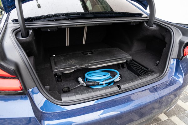 A hagyományos hajtáson túl egy 12 kWh-s bruttó - 11,5 nettó - kapacitású aksi van a csomagtartó alatt, ami hajtja a nyolcfokozatú Steptronic automata váltóba épített villanymotort. Papíron így az autó tud 56-58 villanyos kilométert, WLTP adatok szerint. Ez szép és jó, de a gyakorlatban 40 kilométer feletti hatótávot maxra töltve sem mutatott a műszer, és negyvenet is csak egyszer, egy tíz másodperces állás erejéig, utána leugrott 36 kilométerre. És ez a harminchat az, amivel ténylegesen lehet számolni, ezt tudja villanyos üzemmódban.