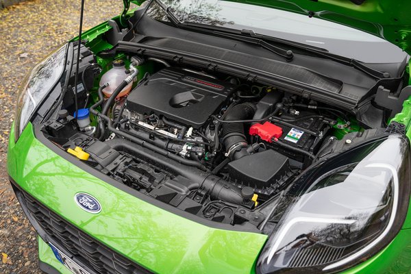 A háromhengeres, 1,5 literes Ecoboost-motorból viszont valamivel többet hoztak ki a sportos Fiestához képest, ugyanis a 200 lóereje mellett már 320 Nm nyomatékot tud, azaz harminccal többet. Ez 6,7 másodperces gyorsulásra elég, és igen, van rajtautomatika is az autóban, mert miért ne lenne? A számok alapján egyébként nem tűnik olyan veszedelmesen erősnek, de a viszonylag korán, a 2500-3500 környékén érkező csúcsnyomaték rátesz egy lapáttal a vezetési élményre, és az üvöltés-durrogás-csattogás is igyekszik éreztetni, hogy ez bizony sportos. Másrészről viszont a Ford külön hangsúlyozta, hogy mint általában az ST modellek, ez sem pályaautó.