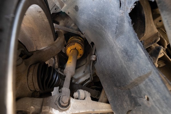 Mert a becsületére legyen mondva, a menéssel nincs baj: stabilan ott van az úton, nem libeg, és ha előzni kell, szépen megindul, csak ilyenkor már a rémisztőnél eggyel jobban füstöl. A két hátsó kerékcsapágy pokolian zúg, és bár járműdinamikailag kevésbé vagyok képzett, végig ott motoszkált bennem a fura érzés, hogy az autó nem két, hanem négy nyomon megy. Érdekes módon viszont hiába az ültetés, nem pattogtunk, benne van a pakliban, hogy nem sarokcsiszolóval, hanem valami rendes, sűrűmenetes ültetőrugóval rakták porba a bódét, bár a gátlókra tüsszentett sárga festék ellenére sem beszélhetünk épp Bilstein-futóműről.