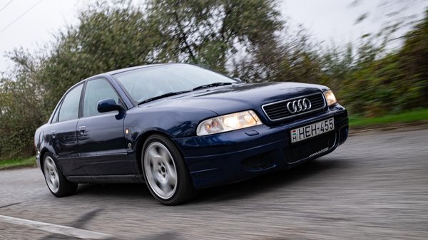 Megvan a neoncsöves rovarcsapda? Szerencsétlen légy kiszúrja a derengő fényt, egyre közelebb avászkodik, aztán jön a jellegzetes hang, az elkerülhetetlen vég. Megértem, akinek egy ilyen 1997-es A4 a neoncső, hiszen mi látszik az utca túloldaláról a szürke november végi dzsuvában? Egy jó kiállású szedán, látványos felniken, a kaszni ízlésesen ültetve, és valahogy még 23 év távlatában is van benne tartás. Hát ha még meglátjuk az 1.8 T feliratot a csomagtartón: nyomaték, erő, a bennünk élő huligán már el is gondolkodott egy új köztes hűtőn meg egy átírt vezérlőelektronikán, mély kútból meríthet, akinek ilyen tervei vannak.
