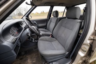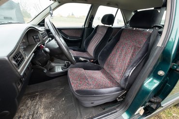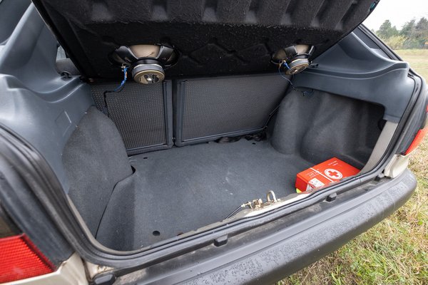 Az utastérben a már említett műbőr szoknyákon túl nincs dráma – a kemény műanyagok tartják magukat, a plüss szinte világít, bár a varrott széleken már itt-ott fárad, s az ülés aljáról is hiányzik egy takaró elem, amit a csomagtartóban találok meg. És minden, de minden működik, csak a csomagtartó központi zárja nem. Villanyablak, műszerek, légzsák, ABS, rádió, hátsóablak-fűtés és kormányszervó – hibátlan az összes. Még a gumik is rendben vannak a kocsin, s gyári dísztárcsák vannak fenn körben, hihetetlen. Egységes és szimpatikus az egész, pláne, amikor megtudom, hogy még egy év vizsga is van az autón, a 290 ezres árból pedig lejöhet pár tízezer egy elszánt vásárlónak.