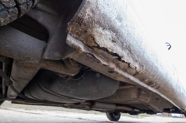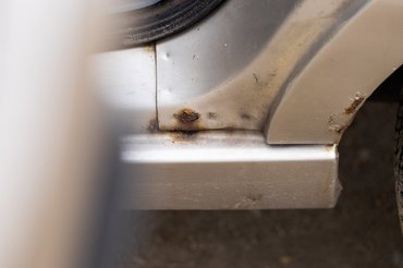 Tényleg nem rossz az állapot, olyan használtas, de kellemes. Nagyon úgy tűnik, hogy nem volt törve a bódé, ami festék van rajta, az gyári lehet. A hátsó sárvédőív elejét már lakatolták, azt nem is fényezték le, de a munka szakszerű, csak az alapozó feketéje zavarja a szemet. Más rozsdát nem látok az autón – alulról fotózva vannak olyan gócok, amelyekről vakarászásra kiderülhet némi korrózió, de simán lehet, hogy csak koszosak. A motortér tiszta (kicsit túlságosan is, jobban szeretem a poros, olajpárás géptereket, azokon látszik, mi a stájsz), csak a jobb tornyon van egy apró rozsdacsipa, ami szerintem a következő két évben biztos nem lesz még bukási pont a vizsgán, de simán kibírhat még többet is javítás nélkül.