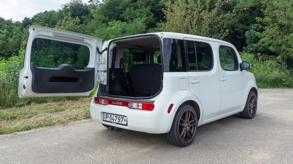 Sokat nem vártam a Cube-tól, de azért valahol mégis reméltem, hogy vezetni is legalább fele annyira jó lesz, mint amilyen érdekesen néz ki. A valóság azonban kicsit hervasztó, elvégre a Renault-Nissan B platformjára épült egy csomó, 2000-es évek végi kisautóval együtt, Cliótól kezdve a Note-on át a Capturig – sőt, ennek a platformnak a leszármazottjára készítették a Daciákat. Innen nézve már nincsen meglepetés, de azért 10 évvel ezelőtti mércével sem mondanám a legcsendesebb autónak a Cube-ot, viszonylag nagy a menetzaja, hangosan dobol a futómű és a kesztyűtartó is előszeretettel zörren fel a kátyúkon. A fotelszerű ülések miatt a kissé ügyetlen futómű ellenére elég kényelmesnek tűnik, de kanyarban azért dől a szekrény. A kormányzást sem mondanám különösen pontosnak, egyszerűen olyan, mint az akkori átlagos, olcsó kisautókban.