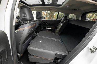 Szerencsére minden hátsó ülés külön-külön előrecsúsztatható a sínjén, s a támlájuk is többféle meredekségbe állítható. Némi ügyeskedéssel pár száz literrel úgy is megtoldható a csomagtartó, hogy megmarad a hátsó három szék, de ilyenkor azért előre szóljunk az utasaiknak, hogy hagyják otthon a lábukat, könnyebb lesz nekik, dr. Nussininek jó receptje van, hogyan kell ezt kivitelezni.