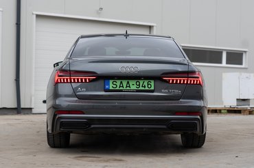 De jöjjön a lényeg: a hajtás. A tesztautó hivatalosan A6 55 TFSI e quattro S tronic névre hallgat, amit még leírni is fájdalmas, viszont a lényeg ott van az elején; 55 TFSI e. Az e tag utal a hibrid hajtásra, amit az Audi tavaly, év elején harangozott be. Fontos viszont, hogy három különböző variáció létezik: az 50 TFSI e, az 55 TFSI e, és a 60 TFSI e. Itt a nagyobb szám több erőt jelent, de ne gondoljuk, hogy a legkisebb is kevés: cirka 300 lóerőt és 500 Nm nyomatékot tud még az ötvenes változat is, az ötvenötösnél a lóerők száma már 367-re emelkedik. A 60 TFSI e-vel pedig legkevésbé sem vicceltek, ugyanis az előző verzióktól eltérően itt már nem négyhengeres turbós benzinessel, hanem V6-os motorral van összekapcsolva a villanymotor, így az összteljesítménye 449 lóerő (Q8-nál 462) és 700 Nm nyomatékot ad le. Ez egyébként csak az A8, Q7, és Q8 sajátja lesz.
