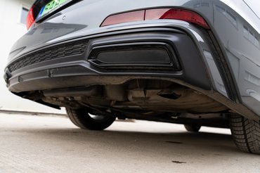 A plug-in verzió miatt bizonyos extrákat tartalmaz az alapár, például S-line optikai csomagot, melynek részeként méhsejt mintájú kamu beömlőket kapott az autó a nem túl meggyőző diffúzorral egyetemben, illetve a króm betétek matt fekete színt öltöttek. Főként utóbbi dob nagyot a megjelenésen, viszont az is igaz, hogy az alapár 24,8 millió forint, tehát pár más színű műanyag elem igazán beleférhet.