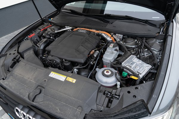 Bár a tesztautó nem a csúcsváltozat, azért a maga 367 lóerejével és 500 Nm nyomatékával enyhén fogalmazva is baromira megy. Ez a teljesítmény egy négyhengeres benzinmotorból (252 lóerős és 370 Nm nyomaték) és a hétsebességes S-Tronic váltóba épített villanymotorból (142 lóerő és 350 Nm nyomaték) áll össze, és ugyan önmagában a benzinmotor is tisztességesen mozgatja az autót, a villanymotorral egészen más minőségbe vált a móka.