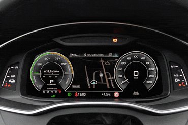 A katalógusadatok a plug-ineknél a bevett szokás szerint ferdítenek a valóságon, de itt sokkal kevésbé, mint megszokhattuk. Maxra töltött akkuval a fedélzeti rendszer nekem 44-47 kilométer körüli elektromos hatótávot (WLTP: 53 km) írt általában, és ezt többnyire ki is tudtam autózni. Hibrid üzemmódban a WLTP szerinti kétliteres átlagfogyasztás sem teljesíthetetlen, de pályázással és országutazással ez inkább 3,5 liter körül van, mármint amíg van áram. Leszívott akksival, hagyományos hibridként használva már 8-9 liter körül fogyasztott, ami annyira nem drasztikus, de a tank a hibrid hajtás miatt csak 52 literes, tehát egy dízel A6-hoz képest sűrű tankolások elébe nézhetnek a nem töltögető tulajok.