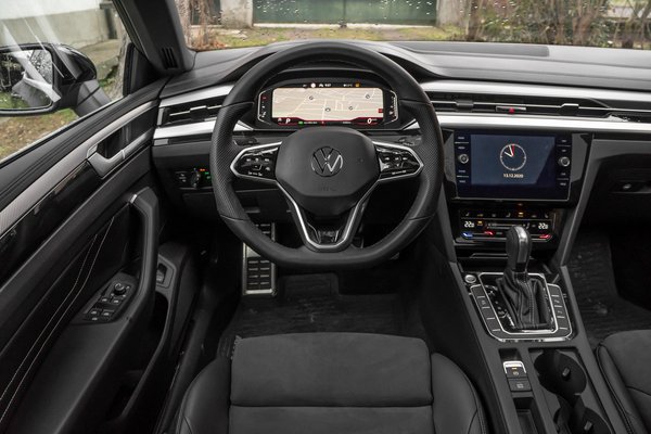 Hogy ez miként sikerült? Az Arteon kényelmesen rugózik ugyan, simán feldolgozza a magyar úthibákat is, de ehhez amolyan bálnamozgás társul. Sportosságnak nyoma sincs, sőt, még az úttartása is elmarad kicsit a Passattól, vagy pláne a kifejezetten ügyesen kanyarodó Golftól. Olyan ez, mint amikor még azt hitték az úgynevezett tömeggyártók, hogy építhetnek nagy autót a meglévő műszaki megoldásaikból, és azzal versenyre kelhetnek a Mercedesszel, a BMW-vel, de legalább az Audival. Renault Safrane és Vel Satis, Opel Senator és Signum, Ford Scorpio – csak pár 1990 utáni példa, egytől egyik bukás. A Volkswagennél figyeltek, értették a leckét, úgyhogy a Phaeton nem így készült, hanem őrült pazarlással. Az sokak szerint tényleg egyenrangú is lett kortársaival, ám ha ebből az Arteonból átül valaki mondjuk az Audi A5 Sportback-be, pár kanyar után megérti majd a különbséget. És akkor a szintén tömeggyártótól érkező, de sokkal komolyabb műszaki alapokra felhúzott Kia Stingert még elő se vettük.