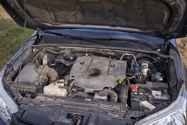 A Carnext kínálatából választott, alig több, mint három éves, viszont már több, mint százkilencvenháromezer kilométert futott Hilux nem a 204 lóerős, 2,8 literes változat, hanem a 2.4 D-4D. Ez ma is ugyanúgy 150 lóerős, mint 2017-ben volt, de talán lényegesebb adat, hogy már 3400-as fordulatnál leadja ezt a csúcsteljesítményt, a nyomatékplafon pedig 400 Nm, 1600-2000 percenkénti fordulatszám között. A szűk hasznos fordulatszám-tartomány jelzi, hogy ez egy hamisítatlan teherautó dízel, amivel nincs is semmi baj, hiszen a Hilux teherautó. Hatfokozatú manuális váltót kapott a kipróbált autóban, amit jó kapcsolgatni, viszont szemérmetlenül hosszúra áttételezték, országúton egyszerűen nem bírtam olyan sebességet elérni, amiben a hatos jó lett volna. Ez tehát kizárólag autópályára való fokozat, a többi öttel azonban szuperül be lehet osztani a Hilux erejét.