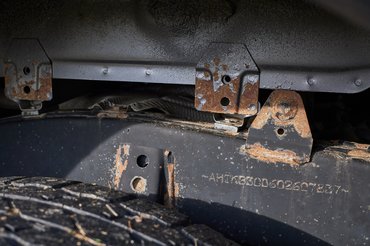 Ez azonban nem jelenti, hogy nyomtalanul tűrte a terhelést a Hilux. A csak kilenc óránál, de ott nagyon megkopott kormány karima és a vezetőülés ki-be szállásoktól meggyűrt oldala mutatja a használatot, de ez igazából semmiség, számomra ijesztőbb az alváz felületi rozsdája. Nem arról van szó, hogy bármilyen strukturális gondra utalna, ez szimpla felületi probléma. De foglalkozni feltétlenül kell vele, mert ahogy a fotón is látszik, az alvázszám és környéke bőven érintett, márpedig ha ott elhanyagolják a rozsdát, később olyan belenyúlást igényelhet a javítás, ami miatt megbukhat eredetvizsgán.