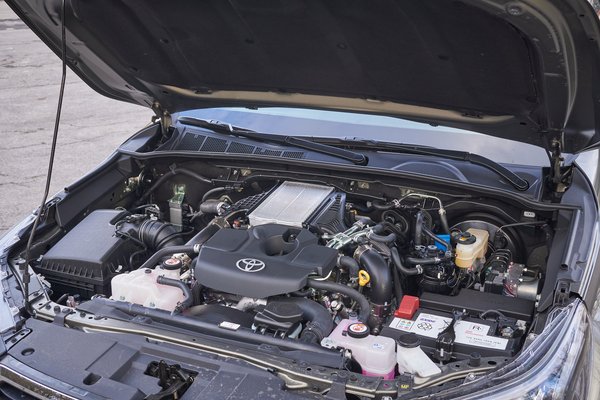 A 2,8 literes, négyhengeres dízelmotor amúgy közeli rokona a továbbra is kapható 2,4 literesnek, és más piacokon már évek óta elérhető, tehát valószínűleg bejáratott technika. Igen ám, de e bejáratás során többen részecskeszűrő (DPF) eltömődésre panaszkodtak, például az ausztrál piacon, ezért hozzánk már extra figyelmeztető matricával érkezett, és a nálam töltött hatszáz kilométer alatt vagy négyszer jelezte ki a műszerfalon, hogy a szűrőt tisztítja épp. Ha nem bíznék a rendszerben, van gomb a bal térdnél manuálisan indítani a regenerálást. Tehát odafigyelés ezek szerint kell neki, de amúgy semmi okunk kételkedni az aktuális Hilux megbízhatóságában.