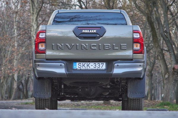A Hilux nemrég apró ráncfelvarráson esett át, és ennek részeként az angol csatacirkálóhoz méltó nevű Invincible a korábbi rendelhető csomag helyett önálló felszereltségi szint lett, olyannyira, hogy kapott saját kiegészítő csomagot, a Sportot. Ebben bélelt, fedett és zárható plató, bukócső és oldalsó fellépő van, de a tesztautón csak az utóbbiból volt egy másik változat felszerelve. A plató fényezését tehát nem védte semmi, de amúgy sem a terhelési tesztet akartam megismételni, annak eredményei nagyjából most is állnak még. Arra voltam inkább kíváncsi, hogy milyen az új motorral – a Hilux ugyanis végre belépett a kétszáz lóerős klubba, és így már a Toyota szalonból sem kell csalódottan kifordulni az életmód-pickup vásárlóknak, hogy szégyenszemre V6-os Navarát vagy Amarokot vegyenek.