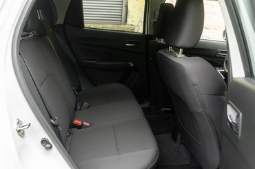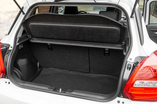 Egy ilyen autónál talán nem is az eddig leírtak a legfontosabbak a hazai közönség számára, hanem az, hogy mennyire lehet elférni benne, mivel sokan első autónak fogják használni. A Swift sokat nőtt az évek során, de azért továbbra is a kategória legkisebbjei közé tartozik. Ennek ellenére még hátul is el lehet férni benne, viszont az én szememben már erőltetettnek ható Alfa-kilincs miatt nagyon sötét van benne. Kényelmesen hátradőlt pozícióban csak a külső kilincs fekete műanyagburkolatát látjuk. Csomagtartóban továbbra sem erős a Swift, 265 liter ebben a kategóriában már elég kevés.