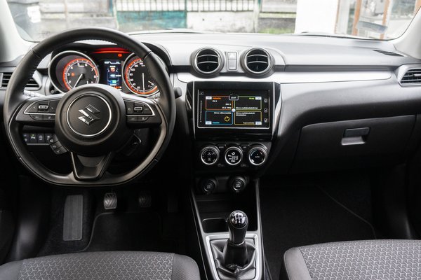 Az itt-ott olcsóbb hatású műanyagok ellenére azért nagyon látszik, hogy ma már egy ekkora autó sem nézhet ki igénytelenül belülről. A Swiftbe jó érzés beülni, mert szép tipográfiájú, analóg műszerei vannak, ügyesen oldották meg a sebességmérő és a fordulatszámmérő közötti kis menürendszert és a kormány fogása is kellemes. Nyoma sincs a Citroën C3-féle kreténkedésnek, itt minden inkább komoly és kimért, de a lehetőségekhez képest igényes. Oké, az első SX4 óta ismert, egyállású ülésfűtés-kapcsoló és az ódivatú beltéri világítás kezelőjéért kár.