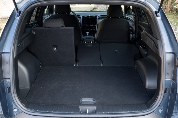 A csomagtér katalógus szerint 620 liter, amibe valószínűleg beleértik a fedél alatti rekeszeket, de azok nélkül is legalább 550 literes kell legyen, ami hatalmas. Költözködés esetén 1,8 köbméterre növelhető a hátsó üléstámlák előre buktatásával, csak elötte az oldalajtóhoz kell fáradni, mert hátul nincs kallantyú. Plusz pont viszont, hogy a támlát több meredekségben lehet rögzíteni, amit hosszabb úton értékelni fognak a pihenni vágyó utasok. De a hátsó sor számomra mégis a Tucson egyetlen szégyenfoltja, itt ugyanis hiába hatalmas a tér, a pad mégis csak kétszemélyes. Annyira bent kezdődik ugyanis a két szélső ülés, hogy a középső egészen keskeny lett közöttük, ami ekkora autóban nettó pazarlás.