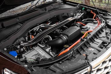 Emellett a hibridsége sem csak poén, bár kizárólag áram használatával nem jut messzire. A hideg teszthéten egyszer sem írt ki többet 25 kilométer hatótávnál, ráadásul fűteni amúgy is beindítja a V6-ost reggelente. Viszont valamit mégis jól csinálhattak, amikor egyesítették a turbós benzinmotort a villanyhajtással és a klasszikus automata váltóval, mert a rendszer azután is vállalhatóan működik, miután kiautóztuk az éjjel beletöltött delejt. Dugóban vagy parkoláskor átvált elektromosságra ilyenkor is, a gyorsításban is segít a villanyhajtás, ezeknek köszönhetően a fogyasztást mindössze 9,1 literre mértem. A hosszú távú átlag 11,1 liter volt a komputer szerint, de még ha kiegyezünk 10 literben, ehhez a testhez szerintem az is oké.