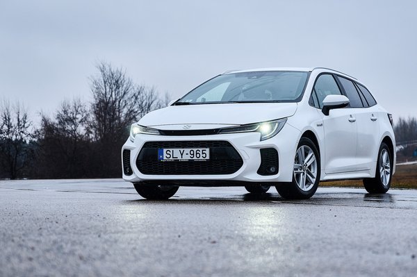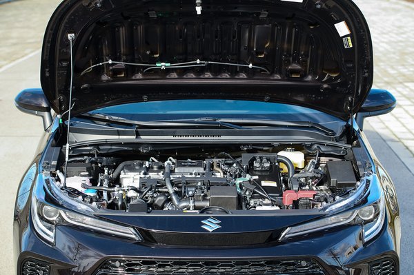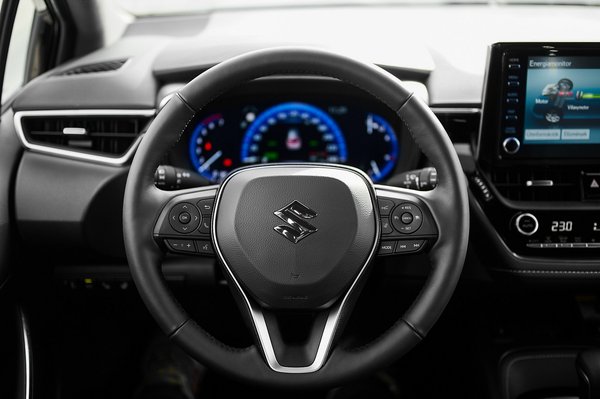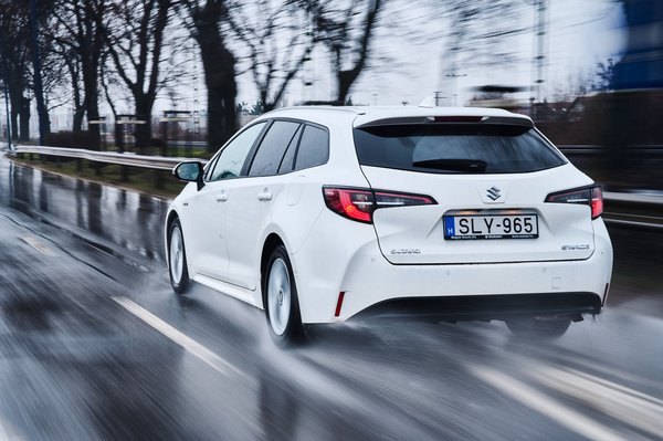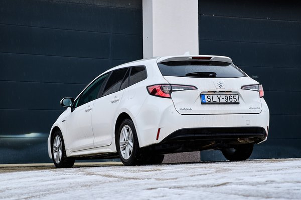 A változtatások minimálisak. Új az első lökhárító, és természetesen Suzuki jelvény van a tetején, meg mindenütt másutt is, ahová jelvény kerül; illetve állítólag az üléskárpit sem egyezik meg a Corolláéval – de ennyi. Még a képen látható felnik is ott vannak a Corolla katalógusában. A gyári kommunikáció szerint a futómű beállításai azonosak, ahogy a kapcsolók, a műszerfal kijelzői, és a teljes hajtáslánc is. Letakart jelvényes játékban tehát kifejezetten nehéz kérdés lesz majd ez a páros, de az azonosság itt alapvetően előny, az 1,8 literes, 122 lóerős hibrid Corolla kombi ugyanis kiváló autó.