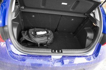 Az i20 hatalmas szerencséje, hogy ideális esetben több időt töltesz az autódban belül, mint amennyit kívülről nézegeted. Mert beülve kimondottan kellemes, európai hangulatú, és ami a legfontosabb, hogy ami kívülről optikai trükk, belül maga a valóság: tágas. Messze van a fejemtől a tető, nyugodtan lehet manspreadingelve ülni, a középkonzol nem fogja vágni a lábszárat. És eközben hátul sem zsugortemetkezés, a 352 literes csomagtartóban pedig elfér egy nagy bőrönd, az üléseket ledöntve pedig 1165 VDA liternyi helyre lehet rámolni.