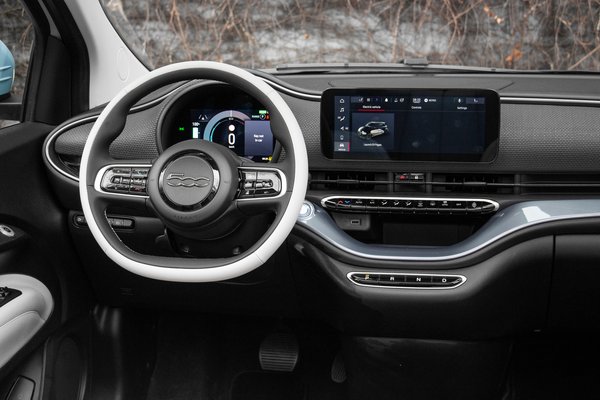 Elöl ülni azonban nemcsak a kényelmes elhelyezés miatt jó, hanem azért is, mert egyszerre nosztalgiázhatunk, és örülhetünk a modern technika vívmányainak. Alapformájával a műszerfal az ősi 500-ast idézi, már amennyiben ugyanúgy a kormány mögött, egy boltozat alatt nézegethetjük a műszeregységet, mint a régiben. Maga a műszer azonban már nem mechanikus, hanem modern LCD kijelző, amelyen a kormány bal küllőjén nyomogatható gombokkal számos információt jeleníthetünk meg, köztük például a fogyasztást és a várható hatótávot, a navigációs térképet, vagy akár a vezetőtámogató rendszerek használati utasítását.