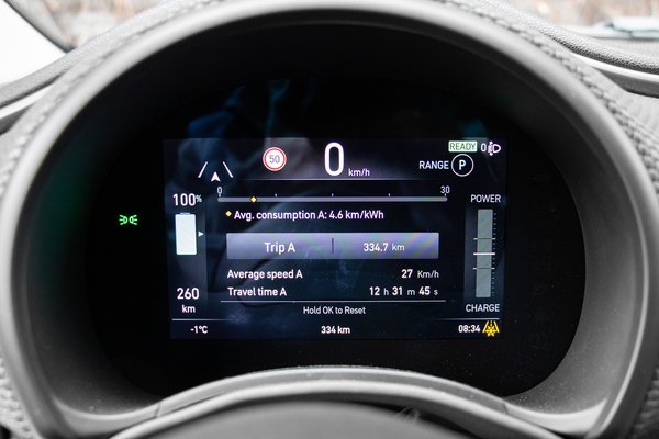 Egy elektromos autó esetében azonban talán nem is ez a kulcskérdés, hanem az, mennyit megy el egy töltéssel, illetve hogyan tölthető. Az első kérdésre a legőszintébb, ámde semmit mondó válasz az, hogy attól függ. Sikerült ugyanis éppúgy elérni 100 kilométerre vetítve 28 kWh-s fogyasztást, mint 14 kWh-sat. Az első esetben mínusz két fokos volt a külső hőmérséklet, ment a fűtés, sőt, az ülésfűtés is, a tempó meghaladta a 100 km/órát, és néha kapott egy komolyabb gázfröccsöt is az 500-as. A bekapcsolt üzemmód a Normal volt. A második esetben Range üzemmódban, városban, legfeljebb 70 km/órával, de többnyire ötvennel autóztunk a plusz két fokos külső hőmérséklet ellenére fűtés és ülésfűtés nélkül.