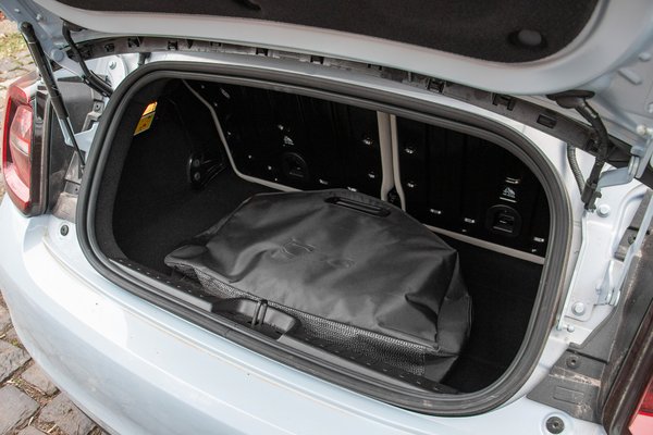Hátul, ahová már bejutni sem egyszerű, már nem ennyire örvendetes a helyzet, de mit várunk egy ekkora autótól? Egy alig 170 centi magas utas ott csak akkor helyezheti tagjait kényelembe, ha elöl sem ül nála magasabb. A csomagtartó is akkora csak, mint egy méretesebb bőrönd, ráadásul a kabrió kivitelnél csak egy kicsi, hasmagasságban nyíló fedélen keresztül pakolhatjuk. Előnye viszont, hogy befogadóképessége mit sem változik attól, hogy a tető fent, vagy lent van-e éppen. A csomagtér elméletileg bővíthető, de a hátsó ülésnek csak a támlái hajthatók előre, így nagy lépcső marad, míg felülről a csomagtér nyílásának alacsonysága jelent korlátot. Röviden: az új Fiat 500 ugyanúgy nem bútorszállításra való, mint elődei sem. Akinek szüksége van legalább az átalakítás után nagyobb méretre, válassza az ebből a szempontból praktikusabb fémtetős kivitelt. Amiből egyébként olyan is kapható, amelynek a jobb oldalán az első ajtó kinyitása után egy kisebb, hátrafelé nyíló ajtó is nyitható (500e 3+1 kivitel), így abba könnyebb beszállni hátra.