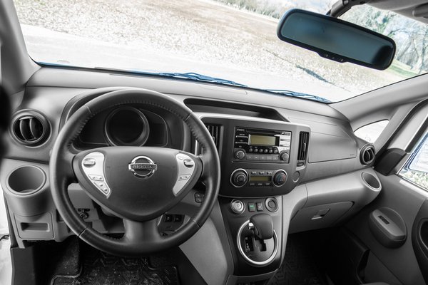 Értem én, hogy teherautó, hogy mások az elvárások, hogy nem a luxus, hanem a munkavégzés a cél. De mondjuk egy Master mégis tud kényelmes ülést és áttekinthető kezelőszervetek biztosítani, míg itt továbbra is túl kicsi az ülés, amit aztán túl messze kell húznom a csak magasságban állítható kormánytól. A legkomolyabb bajom azonban, hogy e közepesen felszerelt (Acenta) e-NV200 egészen elképesztő mennyiségű gombot szór szét a sofőr körül. Mindkét térdnél van számos kapcsoló, a középkonzolon több emeleten még egy rakás, meg persze a rádió is sok-sok gomb, a kormányon is akad belőlük, sőt még az óracsoportban elhelyezett kijelző kezelése is egy külön négygombos tasztatúrát igényelt, félúton a kormány és a középkonzol között. Nem mondom, megtanulható, de olyan íze van, mintha valamikor 1978-ban tervezték volna, Angliában – esküszöm a Minimben nagyobb a rend.