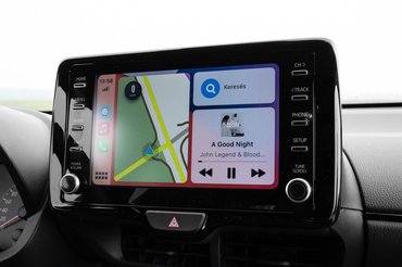 Egyedül az üléshelyzeten érezni, hogy valahol mélyen a lemezek alatt van még benne egy kis Yaris. Ideális testhelyzet ez, ha az ember krumplit pucolna a vasárnapi ebédhez, vezetéshez viszont kellemetlenül magasan vagyunk, 190 centi körül az ember feje beleér a levágott tetőbe. Meg hát nem is fog sokat a nyereg, nekem az ajtó és a középkonzol között térddel kellett támasztanom, hogy ne essek ki a kanyarokban, de szerintem ezt a problémát lesz a legkönnyebb orvosolni. Meg ha már levágott tető: a középső tükör olyan alacsonyan van, hogy az infotainment kijelzővel együtt már a túlélhetőnél jóval nagyobbat takar ki a külvilágból.